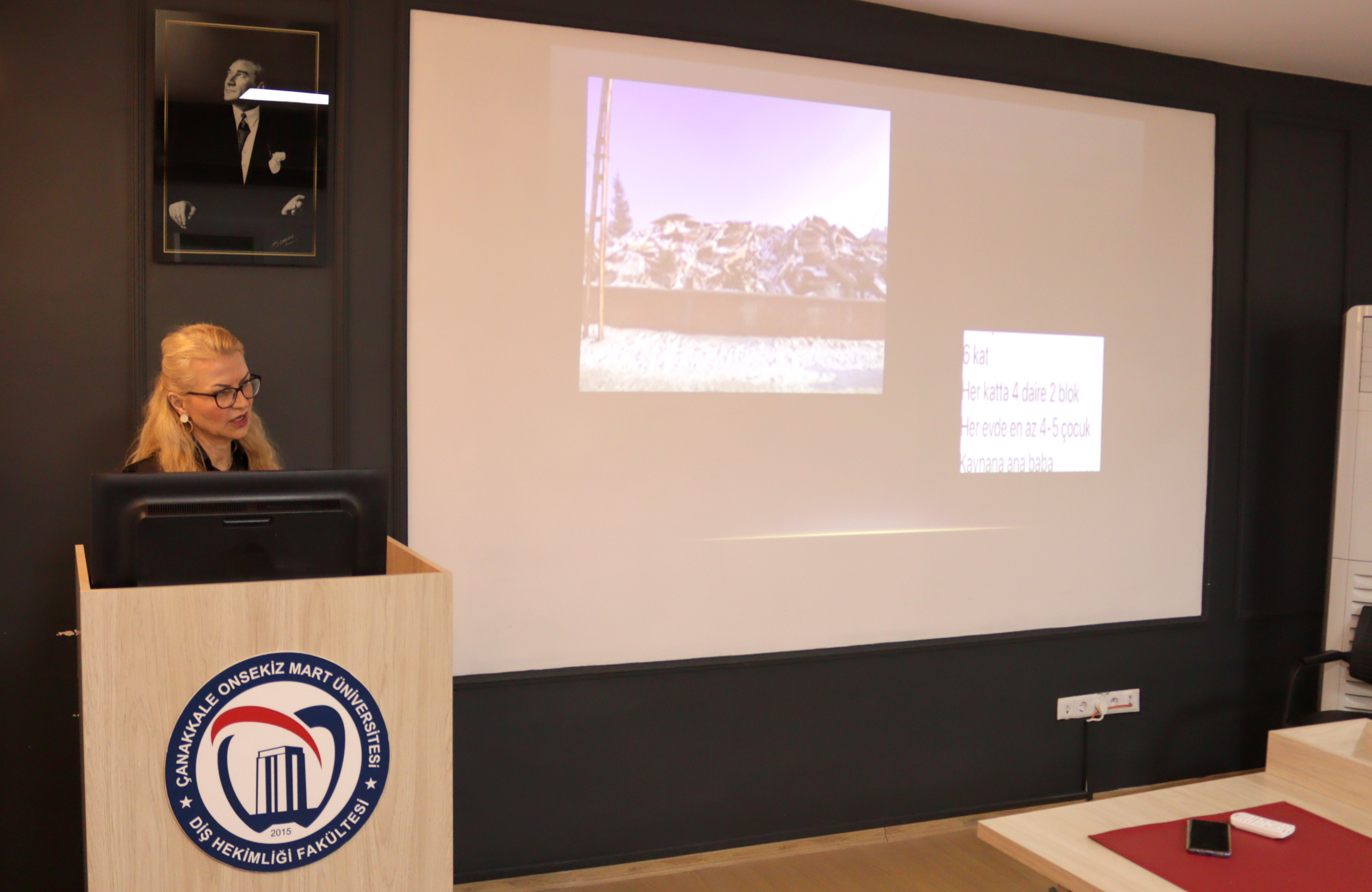 Fakültemiz ve merkezimiz personelinin katıldığı söyleşinin açılış konuşmasını yapan Dekan V. Prof. Dr. Esra Ercan “Deprem gerçeğini göz ardı etmek yerine doğru bilgiler ışığında hazırlıklı olmak ve küçük önlemler almak belki de bizim hayatımızı kurtaracak” diyerek Çanakkale’nin deprem bölgesinde yer almasından dolayı bilgilerin güncellenmesini ve gerekli hazırlıkların yapılmasının önemini vurguladı. Prof. Dr. Esra Ercan “Bu anlamda hocalarımızı fakültemizde ağırlamaktan mutluluk duyuyorum” dedi.