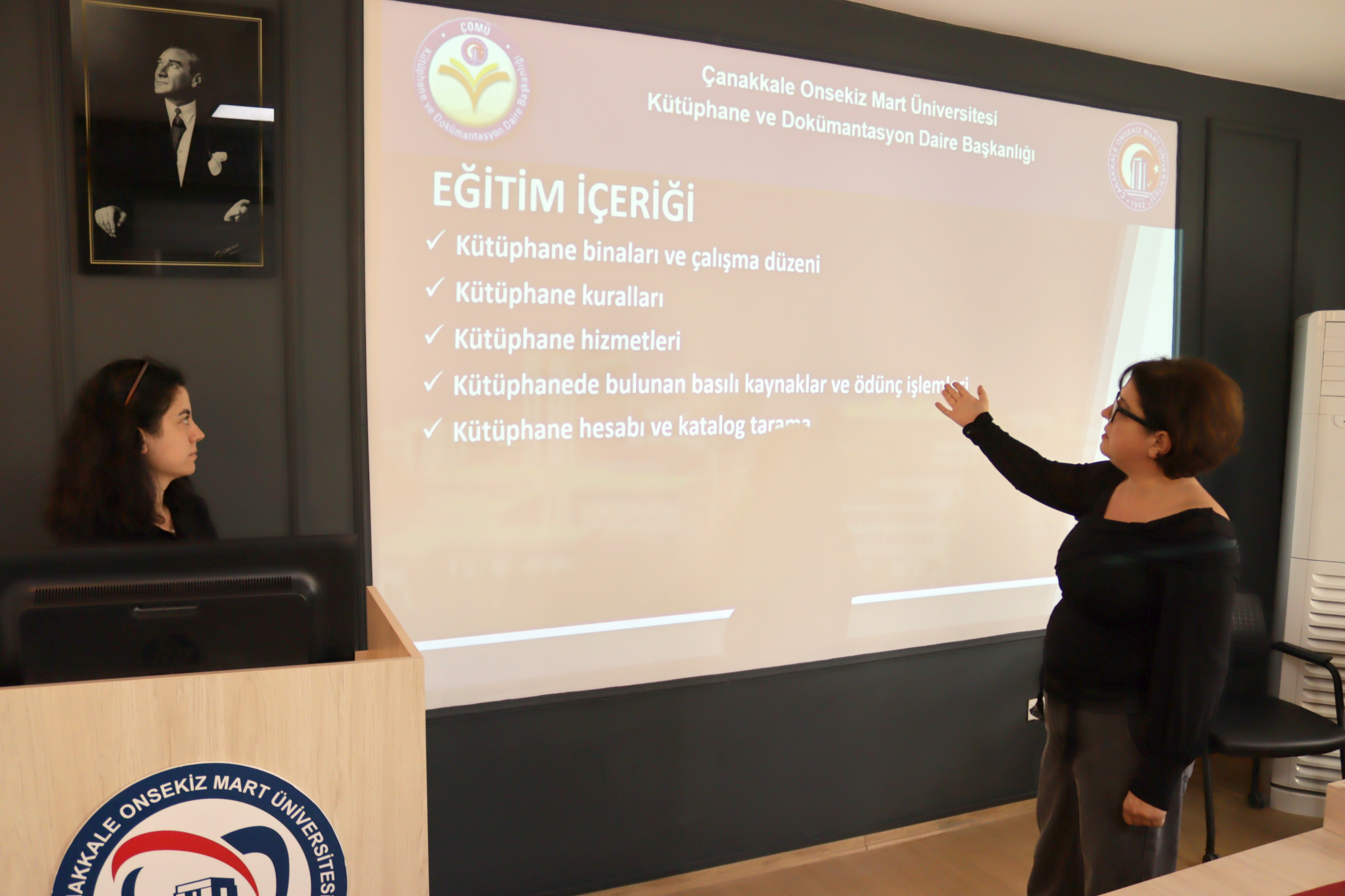ÇOMÜ Kütüphane ve Dokümantasyon Daire Başkanlığı Kütüphanecileri; Öğr. Gör. Esra Arslan ve Büşra Bilir tarafından fakültemiz uzmanlık öğrencilerine üniversitemiz kütüphanesinin kullanımı konusunda eğitim verildi.