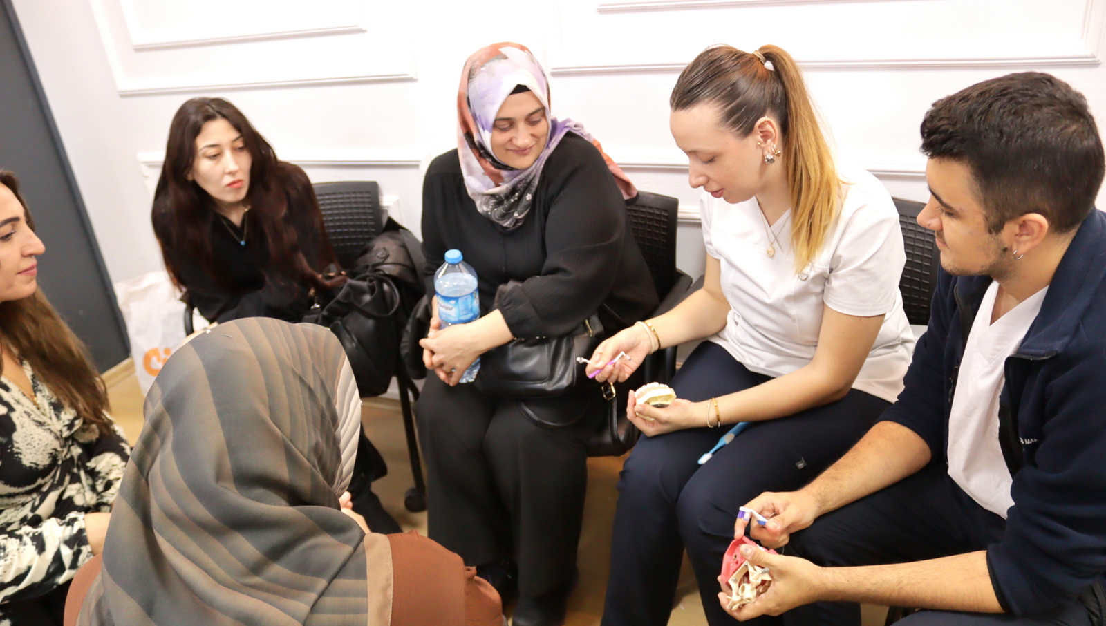 Fakültemiz Dekan V. Prof. Dr. Esra Ercan koordinasyonunda ve Arş. Gör. Ebrar Koçak’ın katılımıyla gerçekleştirilen eğitim programı kapsamında “Hamilelikte Ağız ve Diş Sağlığı”, “Gebelikte Hormonal Değişiklikler ve Diş Eti Sağlığı”, “Preterm Doğum ve Preeklampsi ile Periodontal Hastalık İlişkisi”, “Mekanik Plak Kontrolü ve Ağız Hijyeninin İncelikleri” gibi başlıklar detaylı şekilde ele alınarak katılımcılara teorik ve uygulamalı eğitimler verildi.