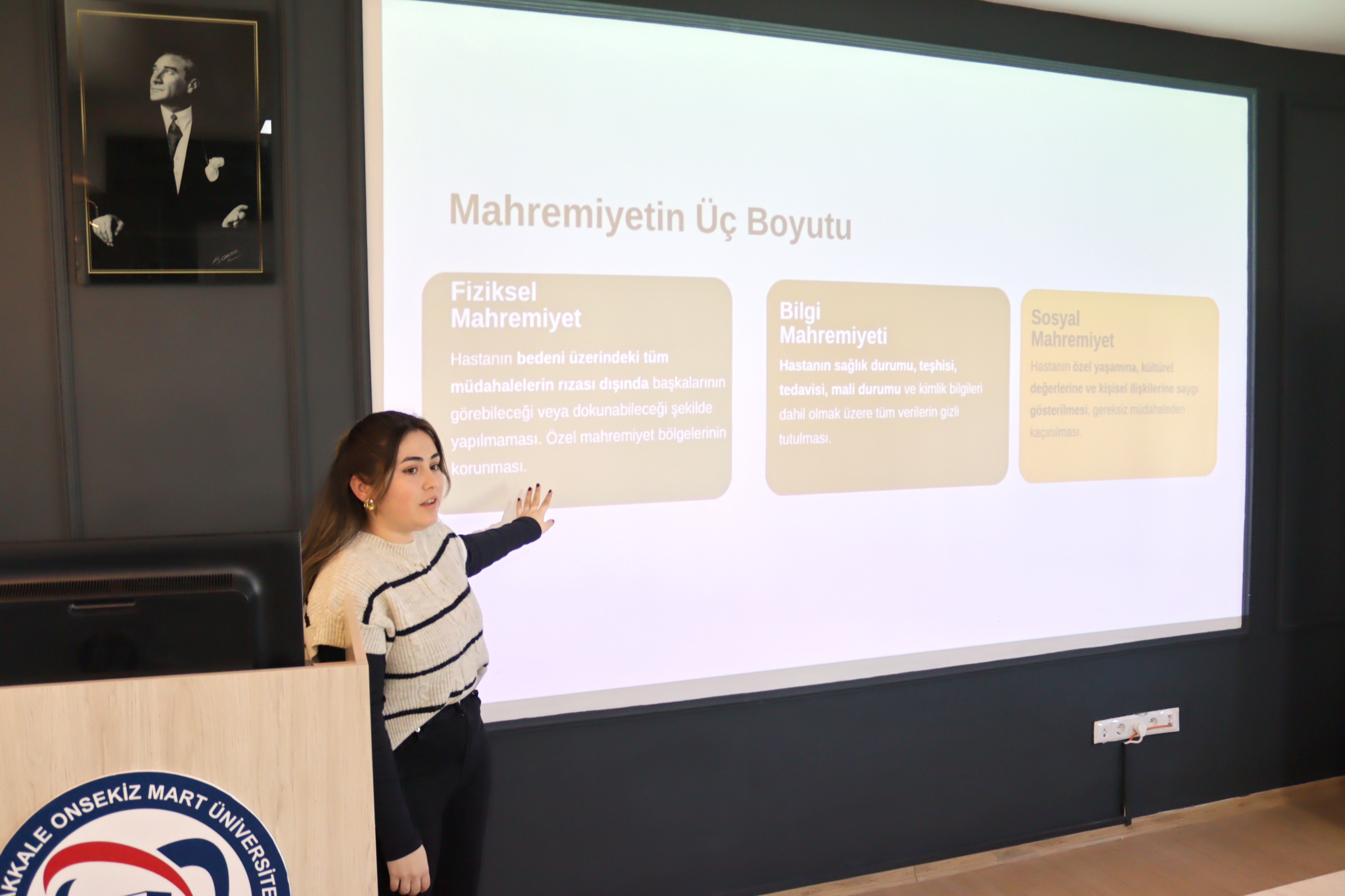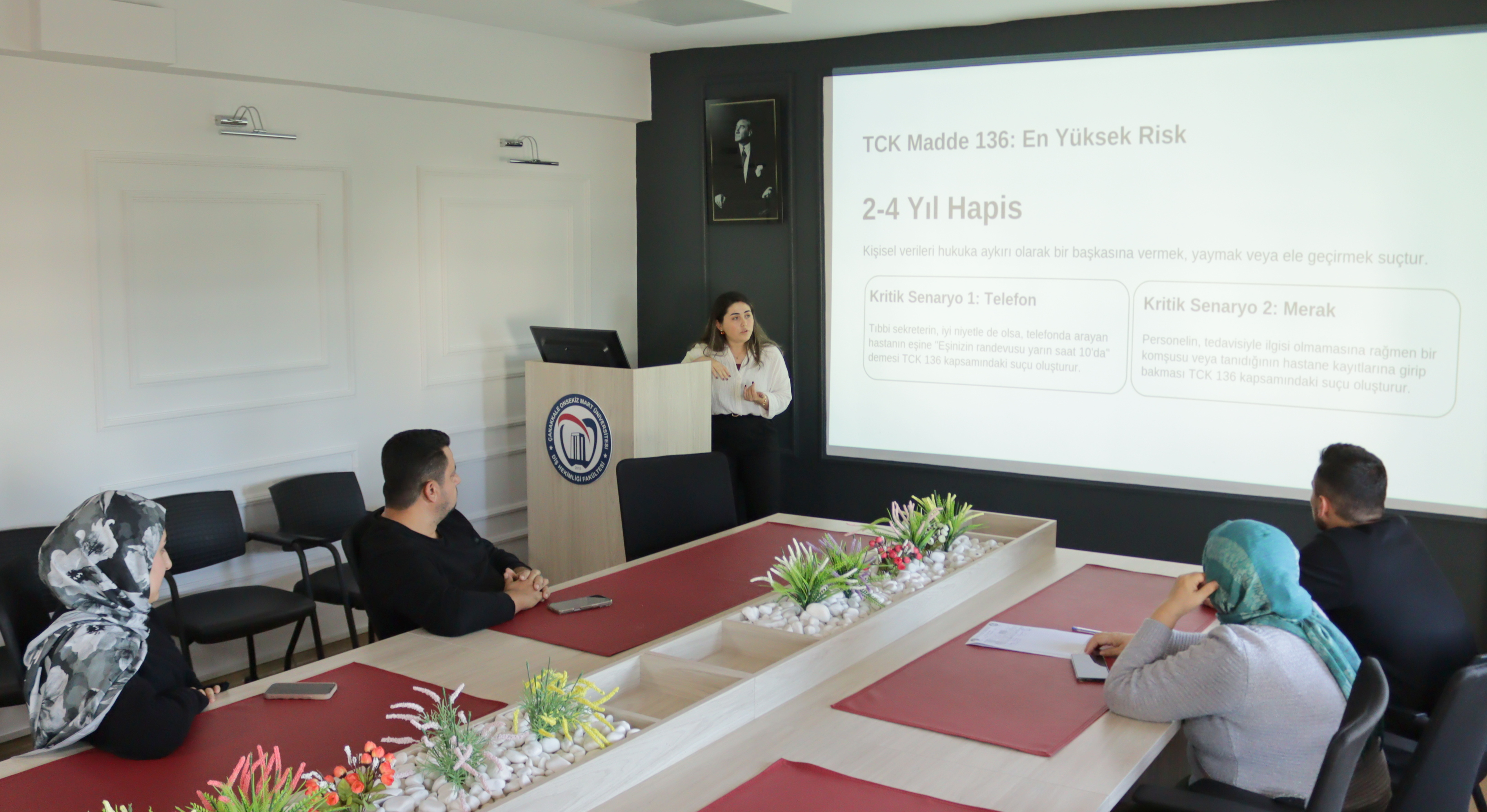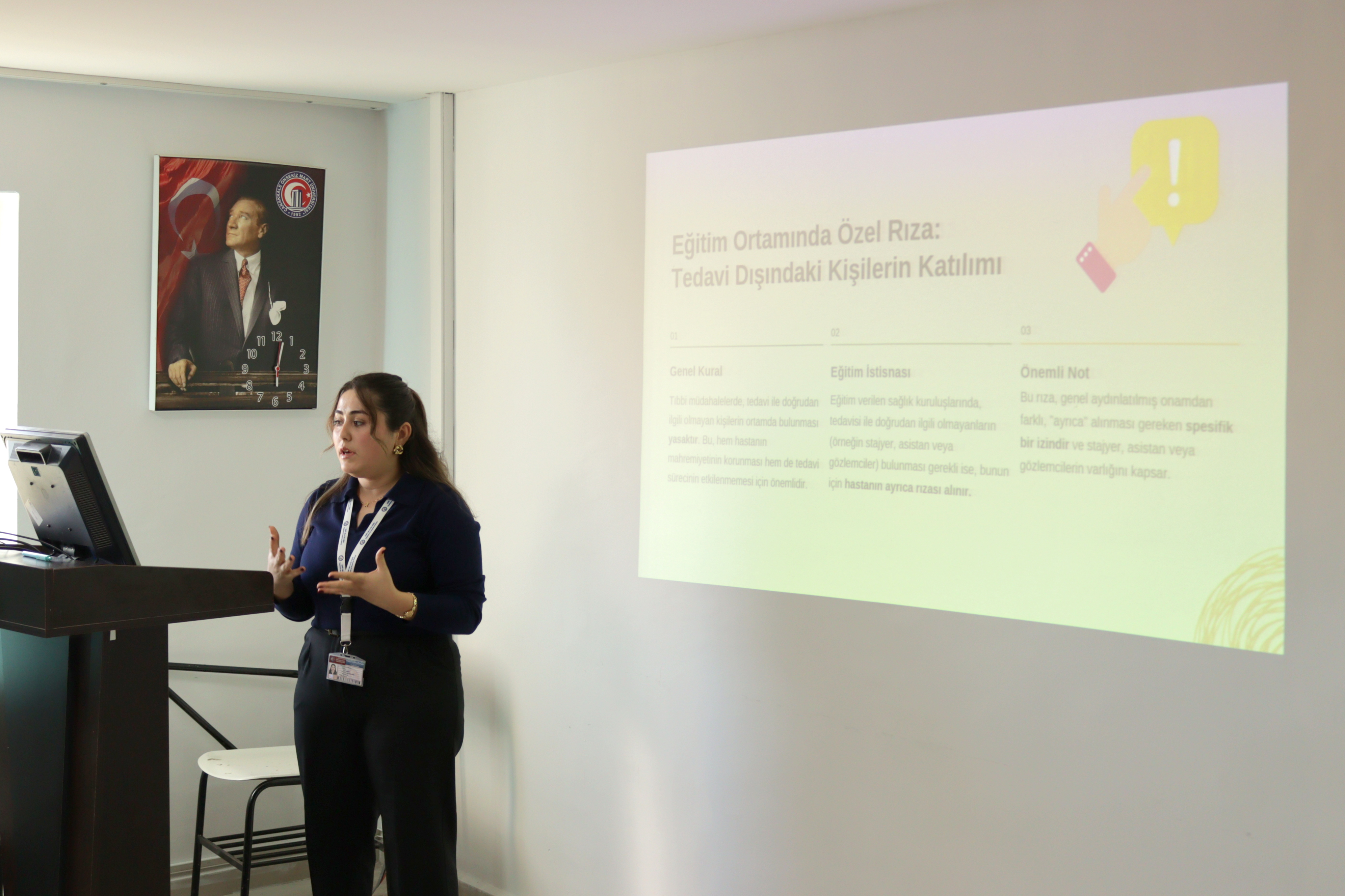 Tüm personele yönelik düzenlenen eğitimde; hasta mahremiyetini sağlamak için gerekli tedbirler ve öneriler ile hasta mahremiyetinin ihlal edildiği durumlardaki yaptırımlar konusunda bilgiler verildi.