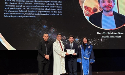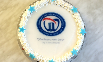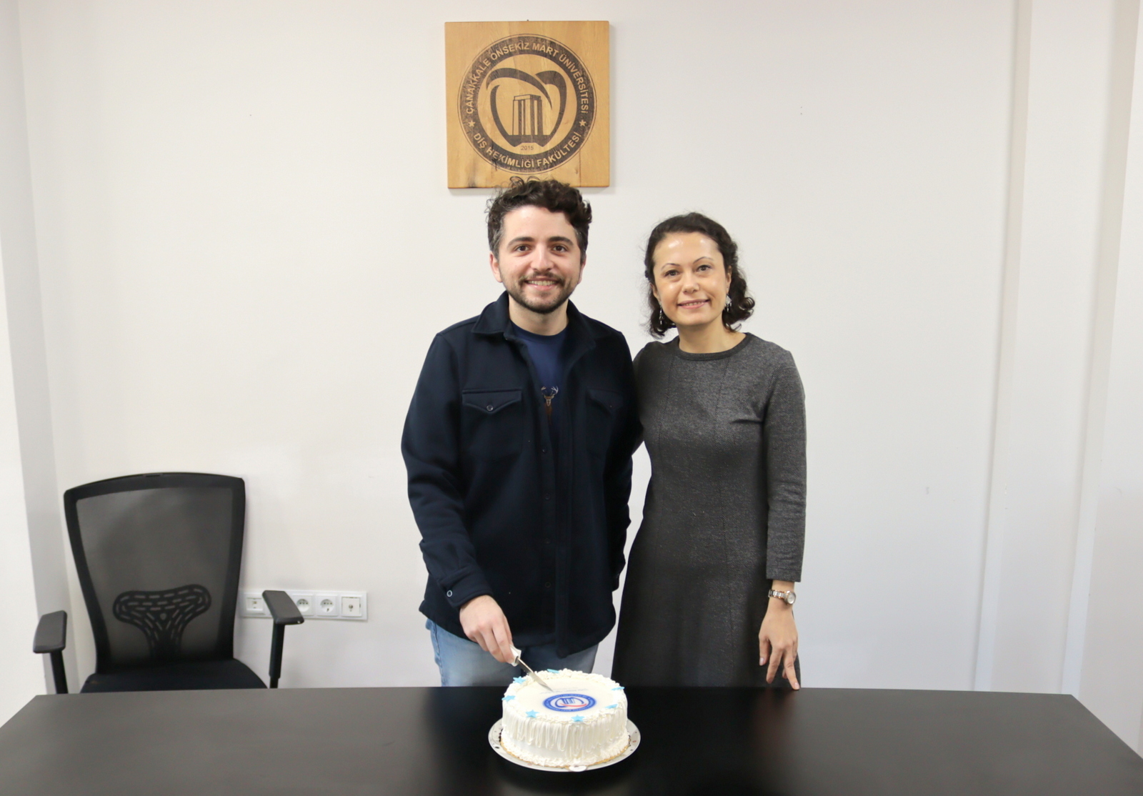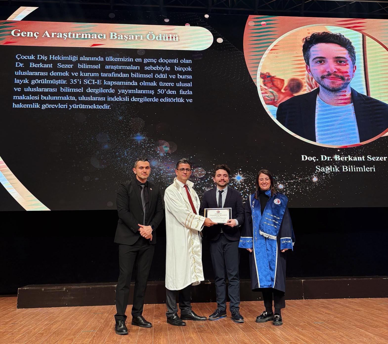 Yaptığı akademik araştırmalar sebebiyle 40 yaş altı araştırmacılara verilen Genç Araştırmacı Başarı Ödülü ile eğitim-öğretim faaliyetleri kapsamında verilen Eğitim ve Öğretim Ödülü’nün sahibi olan ve belgelerini ÇOMÜ EN’leri Ödül Töreninde ÇOMÜ Rektörü Prof. Dr. R. Cüneyt Erenoğlu’ndan alan Fakültemiz Pedodonti Anabilim Dalı Öğretim Üyesi Doç. Dr. Berkant Sezer’in başarısı dekanlık makamında pasta kesilerek kutlandı.